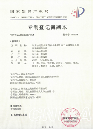 公司擁有一支高素質科研隊伍,具備專業(yè)而高效的研發(fā)能力。近幾年,共取得科技成果30項,其中9項獲國家發(fā)明專利,2項獲湖北省科技進步獎,開發(fā)新產品8個,綠色合成、手性合成和催化等技術引領行業(yè)發(fā)展。主要銷往歐美、日本、韓國、中東、印度等40多個國家和地區(qū)。